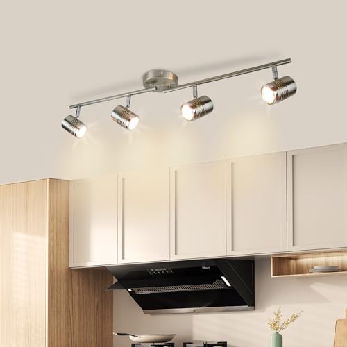 Depuley Rotatable LED Ceiling Lights - Modern Kitchen Spotlights, 4-Way Matt Nickel Finish, Warm White 4x3W GU10 Bulbs