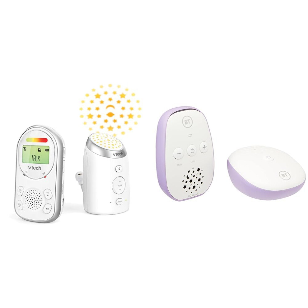 VTech AM706-1W Baby Monitor With 1,000ft Long Range, 2-Way Talk, Vibrating Alert, Glow-on-Ceiling Night Light & BT Digital Audio Monitor 400, HD Soun