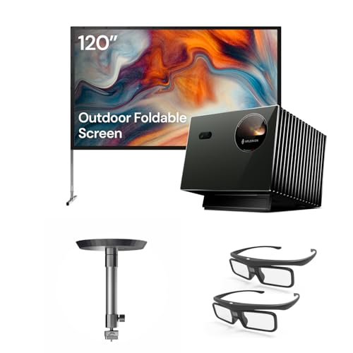 Valerion Outdoor Cinema Bundle - Includes Valerion Pro2 4k Projector + 120" Outdoor Potable Screen + Ceiling Mount Bracket + 3D Glasses