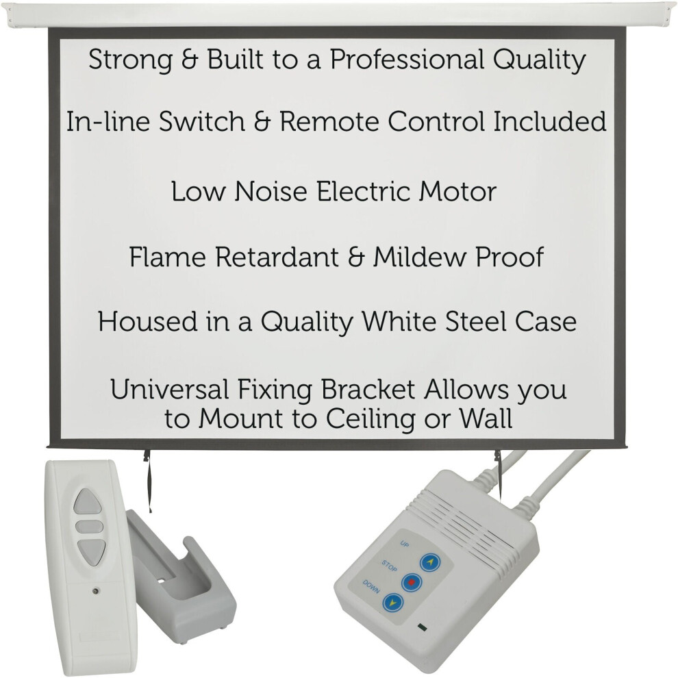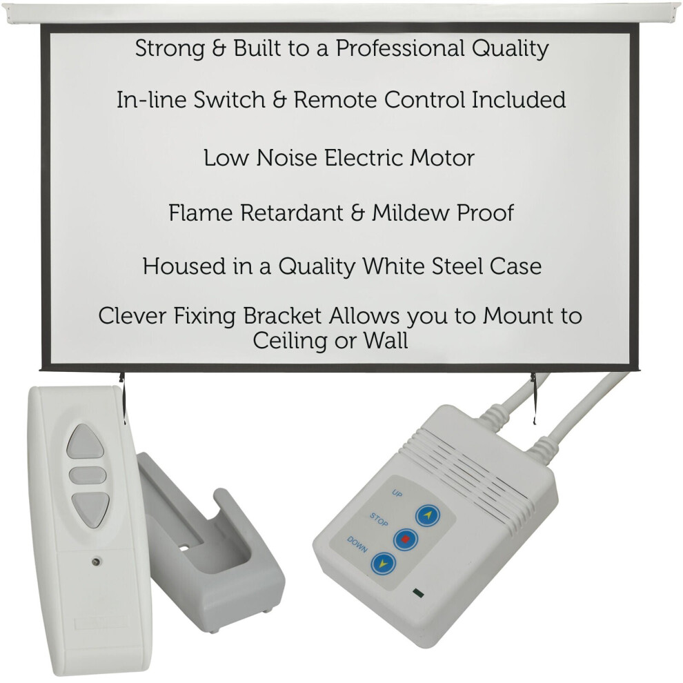 120" Electric Motorised Ceiling Wall Mountable Projector Screen 16:9 Home Cinema