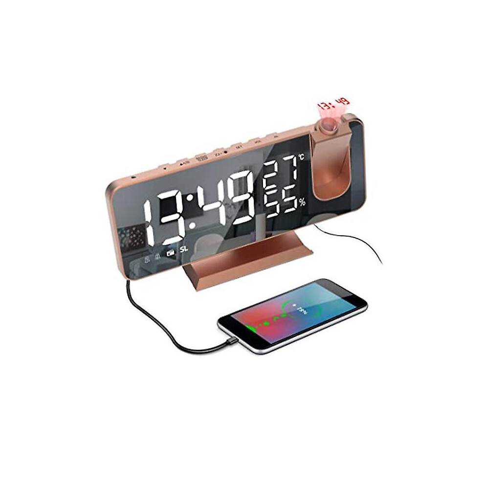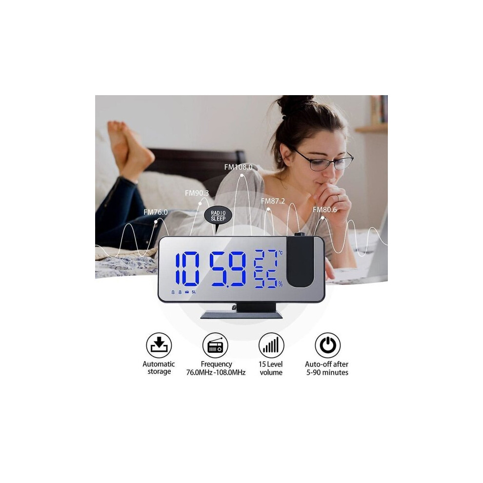 (As show, One size) Ceiling Projection Alarm Clock Digital Clock With Mirror Screen And Projector Dimmer 15 Volume 2 Ringtone Fm Radio Alarm Clock- Ro