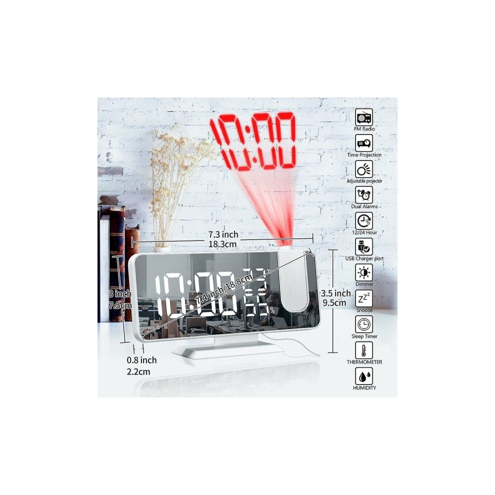 Projection Alarm Clock for Bedroom Ceiling with 180 Adjustable Projector, 7.3 Inch LED Screen, Dual Alarms and FM Radio
