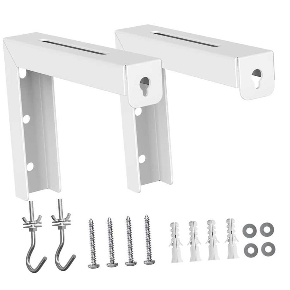 Universal Projector Screen LBracket Wall/Ceiling Mount, 2Piece Adjustable Extension, Includes Hooks And Hardware, White