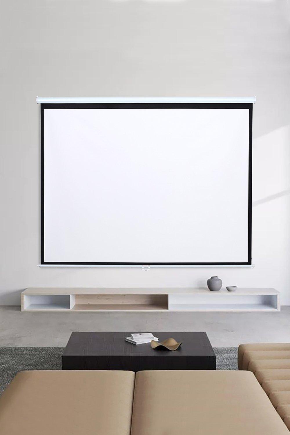 Living and Home 100" Manual Wall/Ceiling Mounted Projector Screen in White