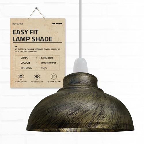 DC Voltage Industrial Ceiling Pendant Light Shades Retro Style Curvy Dome Shaped lamp Shades Metal Easy fit Ceiling Pendant Light Shades for Light fixtures (Brushed Brass)