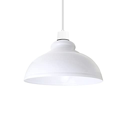 DC Voltage Industrial Ceiling Pendant Light Shades Retro Style Curvy Dome Shaped lamp Shades Metal Easy fit Ceiling Pendant Light Shades for Light fixtures (White)