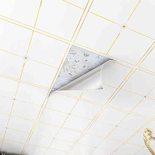 Xiao Ren Ceiling Tiles Panels coving Suspended Ceiling Tiles - 5 10 15 20 Pcs Waterproof & DIY Panel for Interior Wall Decor - Self Adhesive Ceiling Covers Cracks & Stains - Holds 20kg(F,10 pcs)