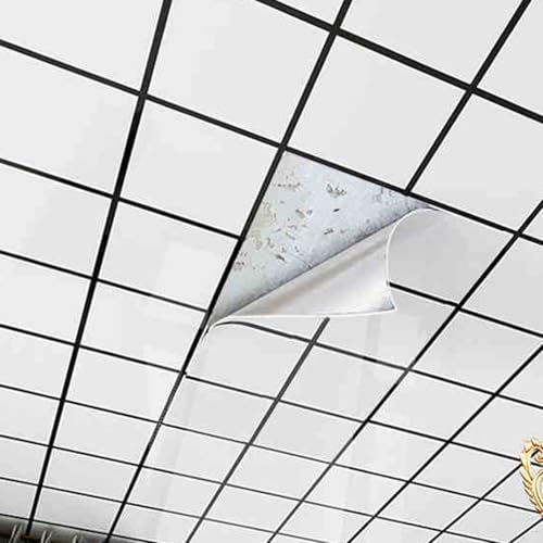 YJEUZCD Aluminum Ceiling Tiles, Interior Housetop Smooth Installation Panel, Office Kitchen Decorate Cover Sheet, Ceilings For Suspended Grid(White,25pcs-30x60cm)