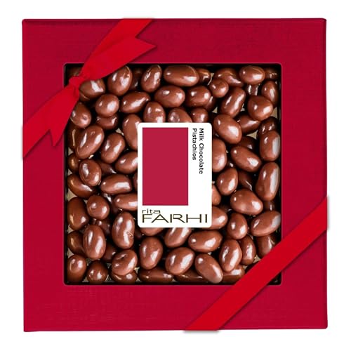 Rita Farhi Milk Chocolate Pistachios Luxury Gift Box 210g – Belgian Chocolate Covered Pistachio Nuts, Palm Oil Free, Vegetarian Gift for Birthdays & Celebrations