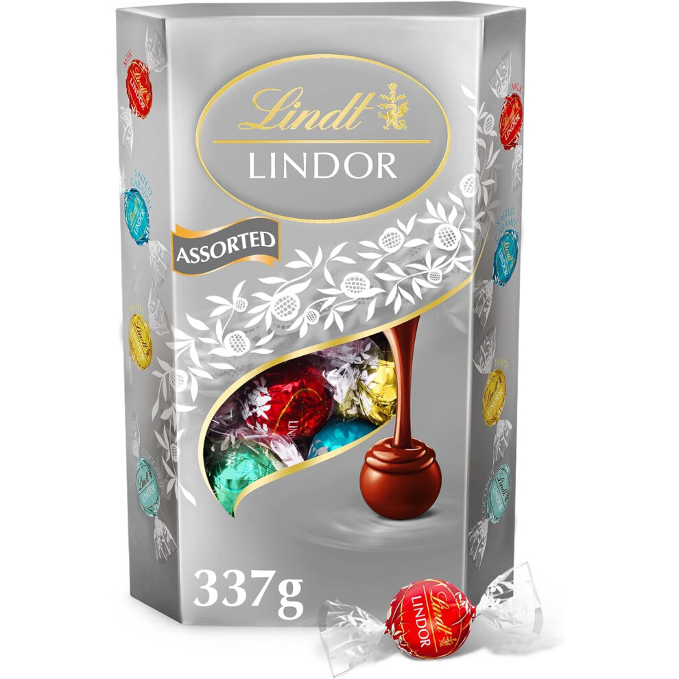 Lindt Silver Assorted ChocolateTruffles Box Approx 26 balls 337g Chocolate Truffles Smooth Filling Gift Present Birthday Celebrations Congratulations