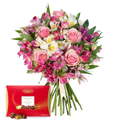 Peruvian Lily & Rose - Fresh Flowers - Birthday, Anniversary, Get Well, Thank You, Occasion Flower - Cut Floral Gifts, Weddings, Sympathy, Celebrations, Mothers day (+ Chocolates)