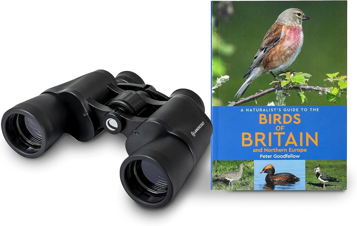 Celestron 73152 LandScout 8x40mm Water-Resistant Birder Starter Kit - Rubber Grip Binoculars with Coated Lens and K9 Optical Glass, includes Birds of Britain and Northern Europe Guidebook, Black
