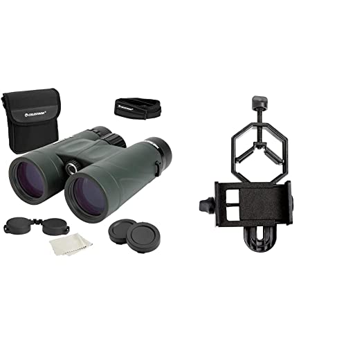 Celestron 71332 Nature DX 8x42mm Binoculars with Multi-Coated Lens, BaK-4 Prism Glass and Carry Case, Green & Basic Smartphone Adapter 1.25" Capture Your Discoveries,Black (81035)