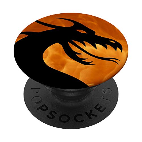 Cell Phone Button Holder Pop Out Knob Black Dragon Head Fire PopSockets Swappable PopGrip
