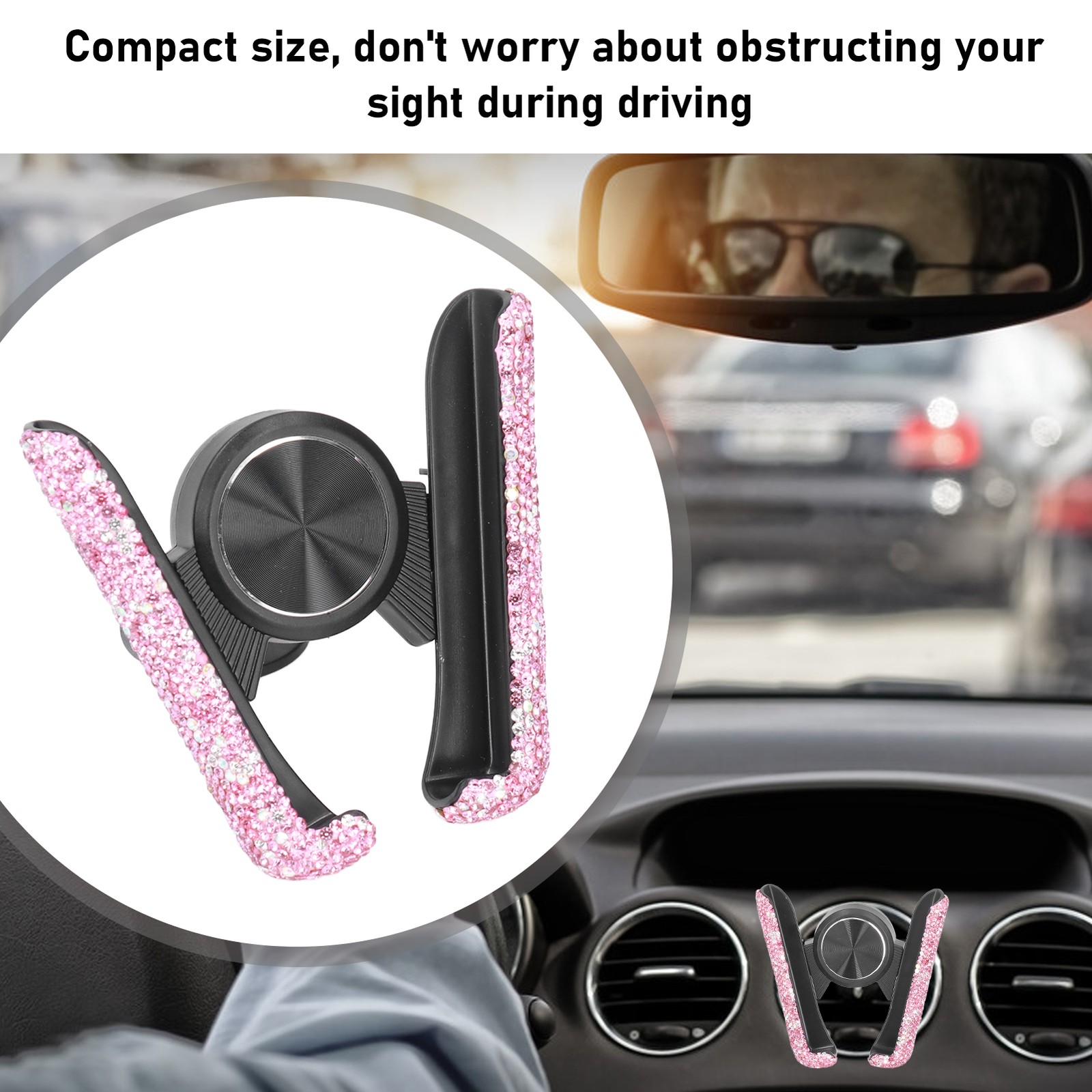⁺Pink Bling Car Phone Holder Vehicle Cell Phone Mount Cradle Adjustable Auto