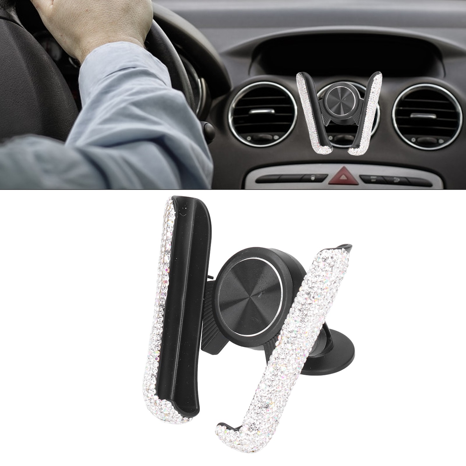 •White Bling Car Phone Holder Vehicle Cell Phone Mount Cradle Adjustable Auto
