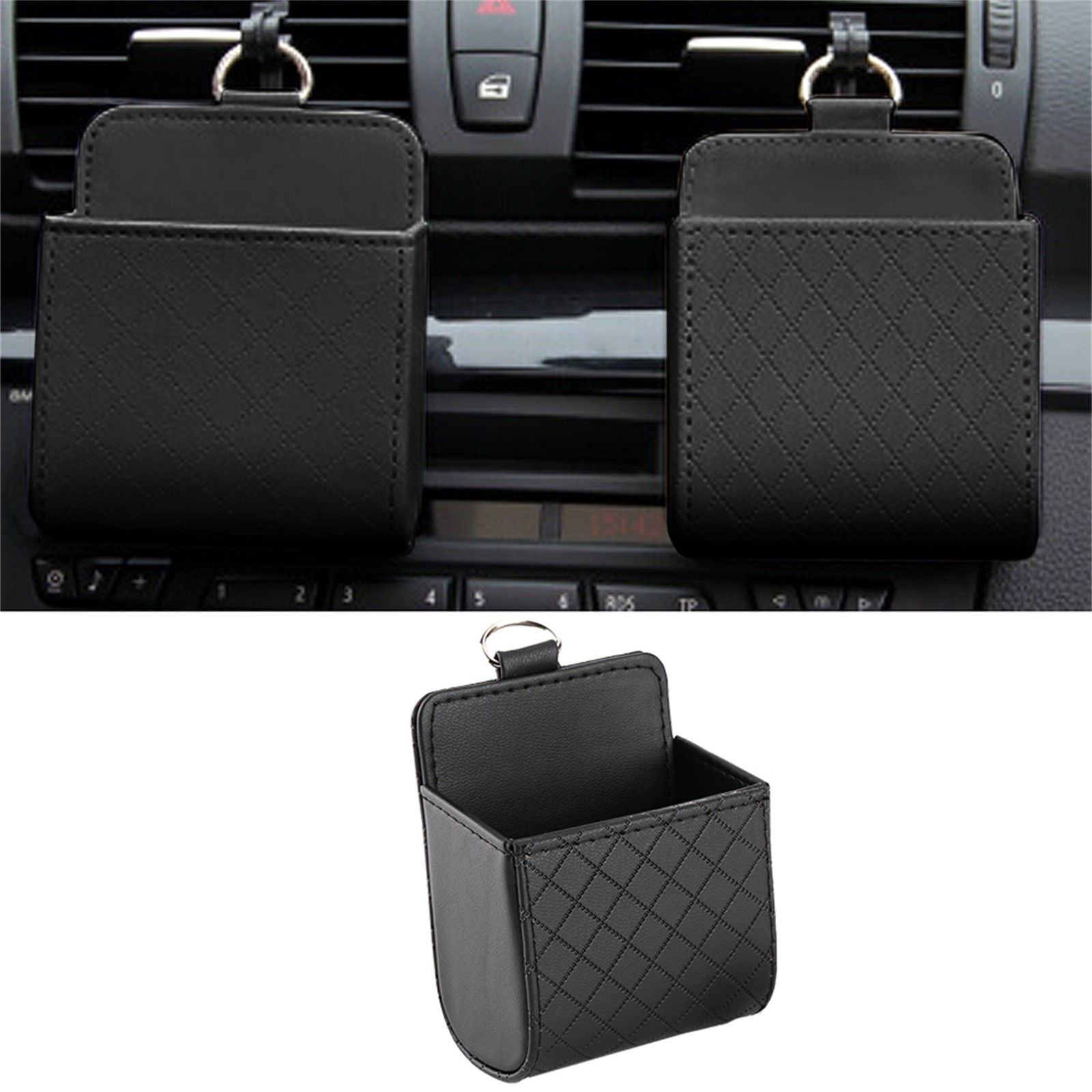 Car Air Vent Storage Organizer Universal Black Auto PU Leather Cell Phone Holder