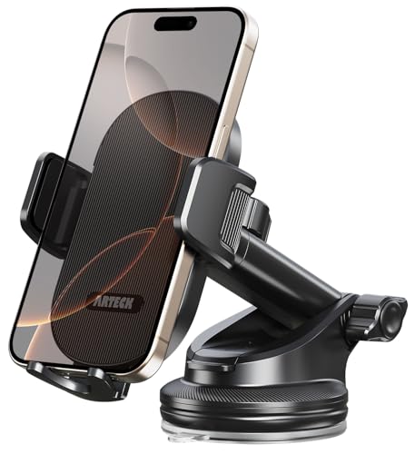 Arteck Car Mount, Universal Mobile Phone Car Mount Holder 360° Rotation for Auto Windshield and Dash, for Cell Phones Apple iPhone 16, Plus, Pro, Pro Max, 15, 14, 13, 12, 11, SE, Android Smartphone