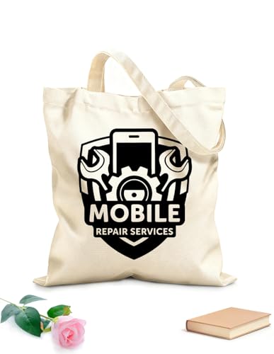 AILOONG High-definition printed tote bags 12 oz thick fabric Mobile Phone Repair Service Shop Business Cell Phone Gear Screwdriver Tool Reusable 25x30cm Small
