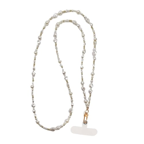 JOMA-E Shop Phone Lanyard Crossbody Stylish Anti-Theft Strap with Tabs, Detachable Phone Chain for iPhone Pearl Beads Charm Chain, Cell phone Neck Holder for Women (C)