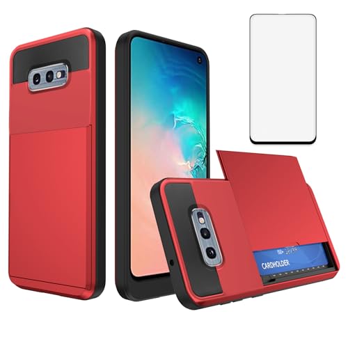 Asuwish Phone Case for Samsung Galaxy S10e with Screen Protector Cover and Card Holder Hybrid Full Body Protective Shockproof Cell Accessories Glaxay S 10e Gaxaly 10se Galaxies Se10 Women Men Red