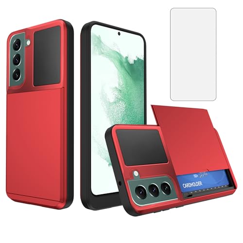 Asuwish Phone Case for Samsung Galaxy S22 Plus S22+ 5G with Screen Protector Cover and Card Holder Hybrid Full Body Protective Shockproof Cell Accessories S22+5G S22plus 22S + S 22 22+ Women Men Red
