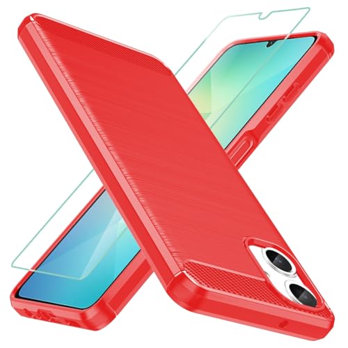Osophter for Samsung Galaxy A06 Case: with 1pcs Screen Protector Shock-Absorption Flexible TPU Rubber Protective Cell Phone Cover for Samsung Galaxy A06(UK-Red)