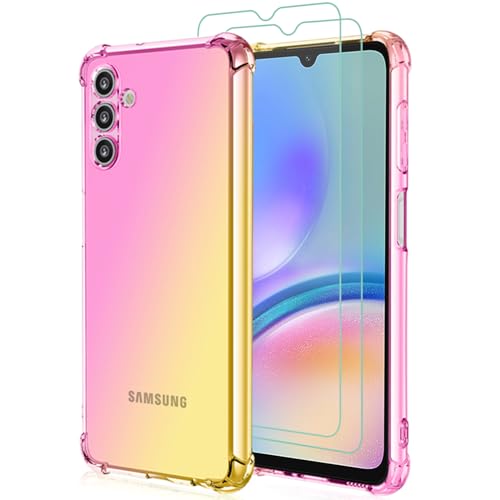 Osophter for Samsung Galaxy A05S Case: with 2pcs Screen Protector two color gradient reinforced corner TPU shock absorption flexible Cell Phone Cover for Galaxy A05S(Pink Gold)