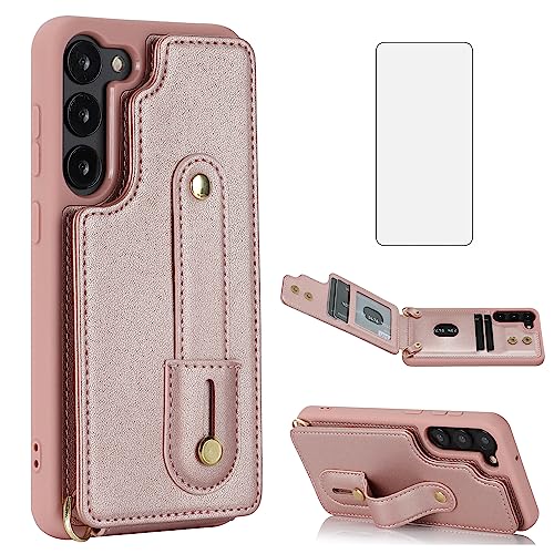 Asuwish Phone Case for Samsung Galaxy S22 Plus S22+ 5G Wallet Cover with Screen Protector and RFID Blocking Card Holder Crossbody Strap Lanyard Cell S22+5G S22plus 22S + S 22 22+ Women Men Rose Gold