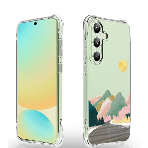 Ftonglogy for Samsung Galaxy S24 FE 5G Case: Clear Cute Flowers Floral Design for Girls Women Slim Soft TPU Bumper Shockproof Silicone Cell Phone Cover (Mountain)