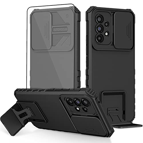 Asuwish Phone Case for Samsung Galaxy A53 5G with Tempered Glass Screen Protector and Slide Camera Cover Kickstand Stand Slim Protective Cell Accessories A 53 G5 53A SM A536U 6.5" 2022 Women Men Black