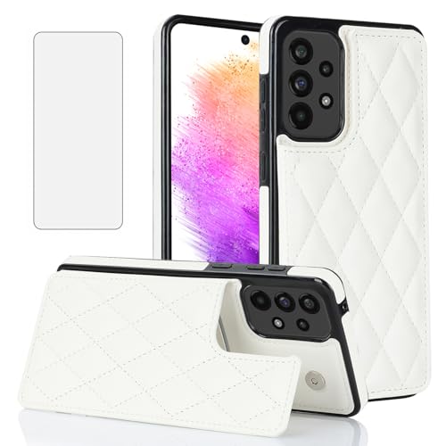 Asuwish Phone Case for Samsung Galaxy A53 5G Wallet Cover with Tempered Glass Screen Protector and Leather RFID Card Holder Stand Slot Cell Accessories A 53 G5 53A SM A536U 6.5" 2022 Women Men White