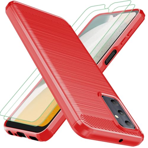 Osophter for Samsung Galaxy A05S Case: With 2pcs Screen Protector Shock-Absorption Flexible TPU Rubber Protective Cell Phone Cover for Samsung A05S(UK-Red)