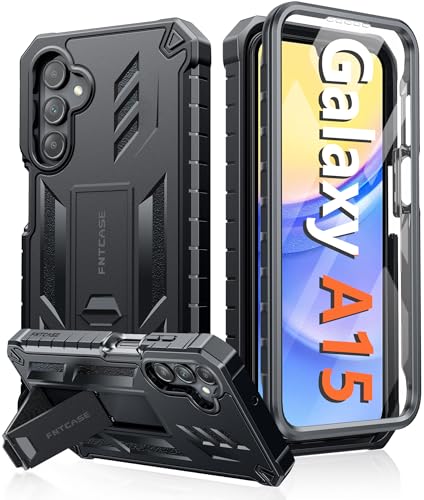 FNTCASE for Samsung Galaxy A15-5G Case: Full Protective Heavy Duty Cover with Kickstand | Rugged Shockproof Military Grade Drop Protection Cell Phone Cases Black