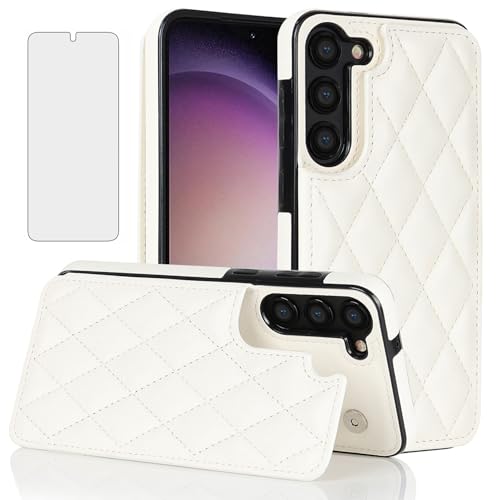 Asuwish Phone Case for Samsung Galaxy S23 Plus S23+ 5G Wallet Cover with Screen Protector and Leather RFID Card Holder Stand Cell Accessories S23plus 23S + S 23 23+ SM-S916U 6.6 inch Women Men White
