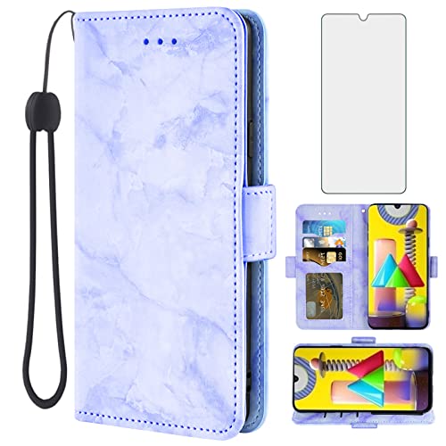 Asuwish Phone Case for Samsung Galaxy M31/M21s/F41 with Tempered Glass Screen Protector and Marble Wallet Cover Flip Card Holder Slot Stand Leather Cell Accessories Gaxaly 31M Prime Women Men Purple