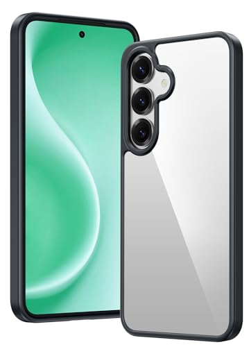 FNTCASE for Samsung Galaxy S25 Case: Military Grade Drop Protection Anti Yellowing Cell Phone Cover - Rugged Shockproof Protective Bumper Transparent Cases(Black)