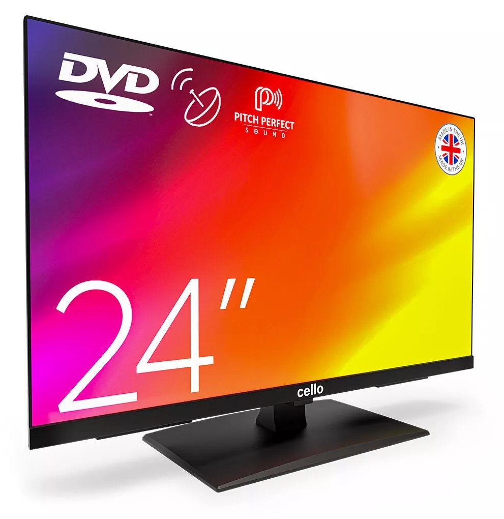 Cello C2424F 24 inch Full HD LED TV Built-in DVD Player Freeview Frameless HD Satellite Receiver Pitch Perfect Speakers Record with USB. DVD Player Perfect for Your Kitchen. UK Made