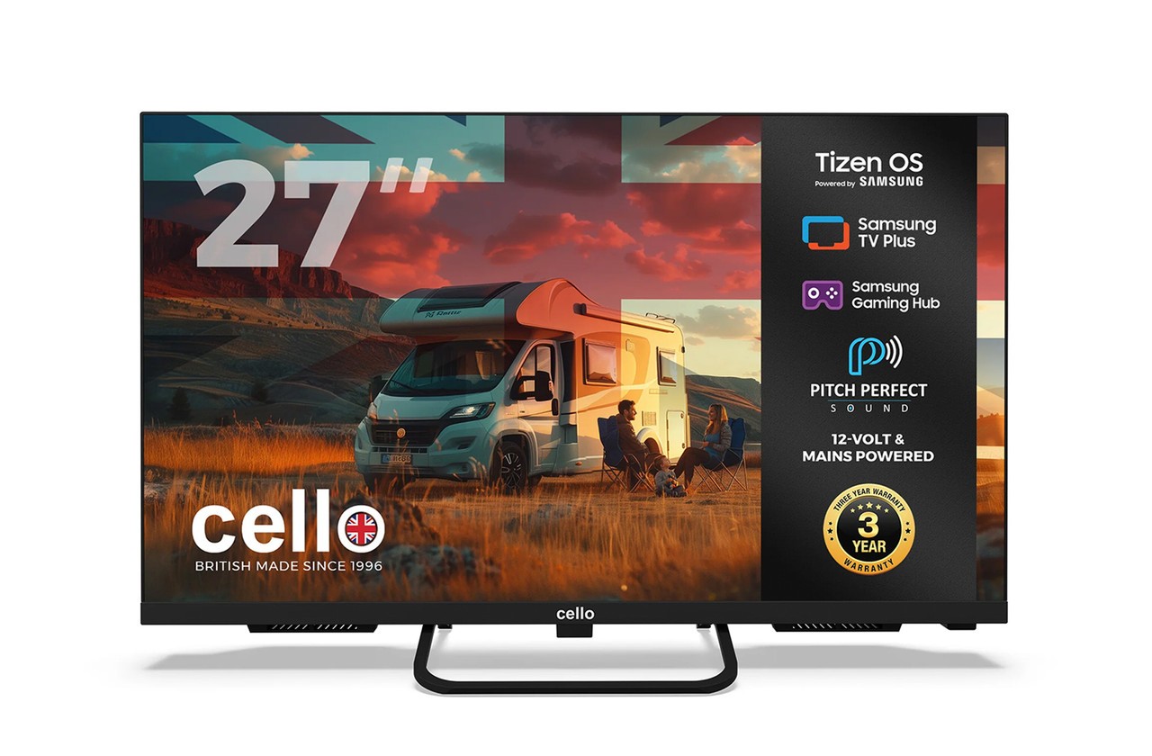 Cello CTRAV-27TZ 27" Smart 12V Traveller TV with Tizen OS by Samsung, Built-in Satellite, Gaming Hub, Pitch Perfect Speakers, Bluetooth, Netflix, UK Made, Ideal for Motorhomes, HGVs & Boats
