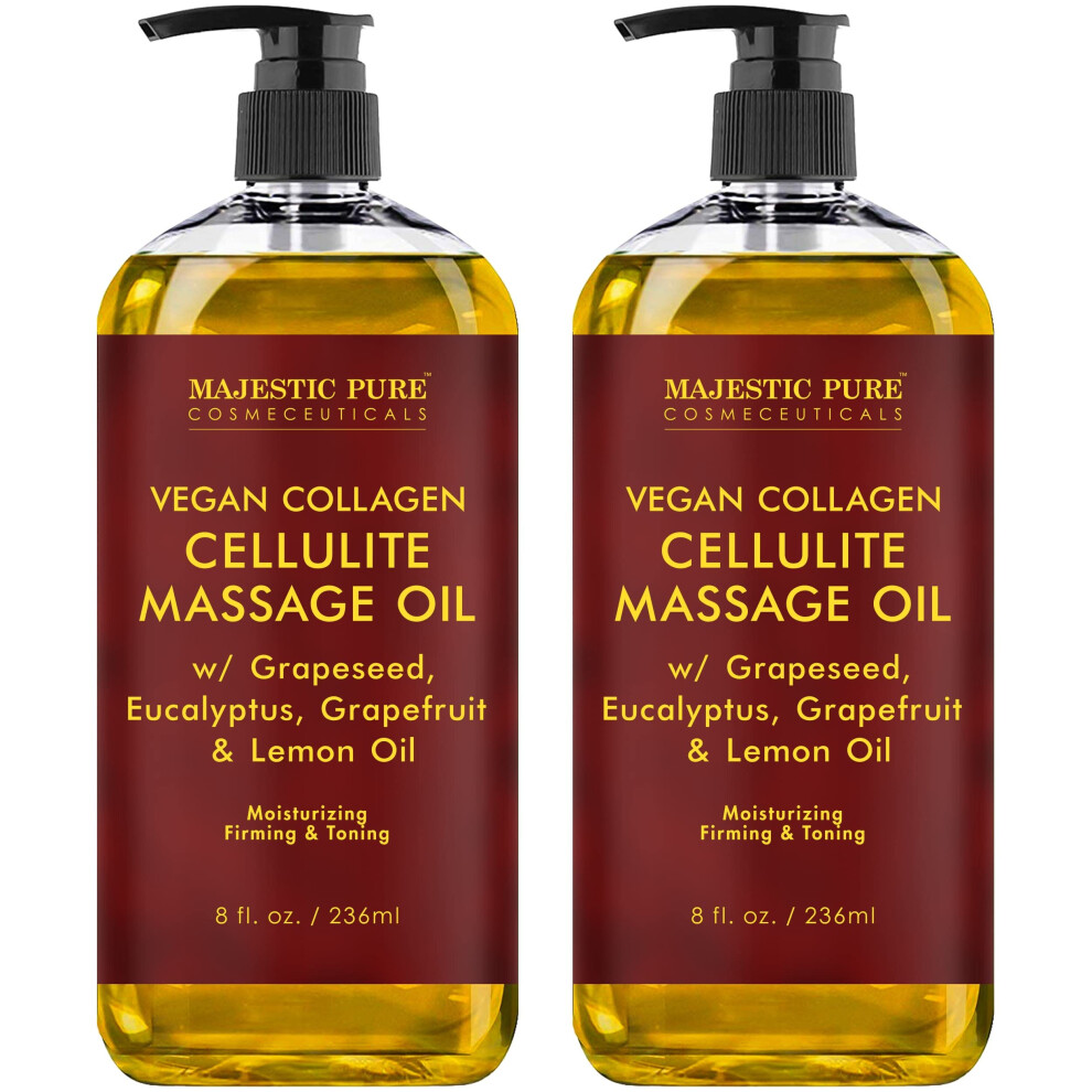 MAJESTIC PURE Cellulite Massage Oil - with Vegan Collagen & Stem Cells Unique Blend of Massage Essential Oils - Anti Cellulite Oil Improves Skin Tigh