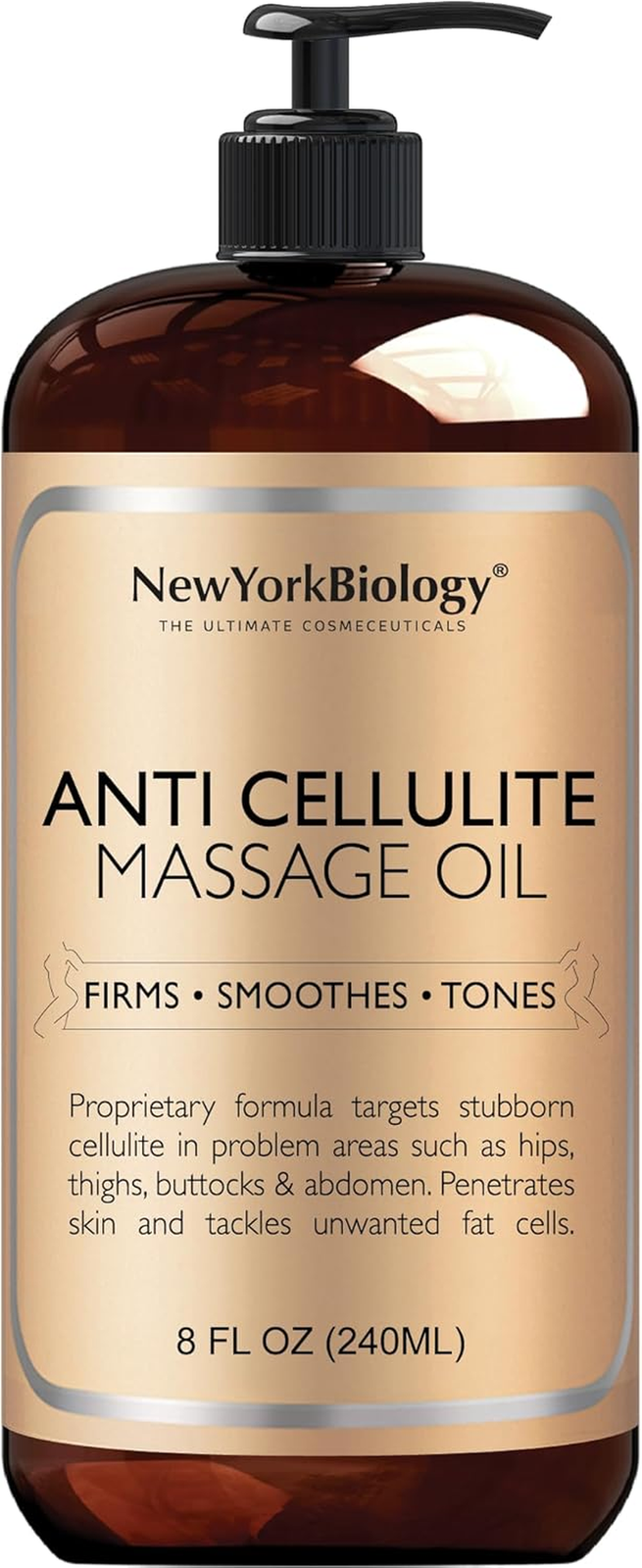 New York Biology Anti Cellulite Massage Oil 240 ml – Made with 100% Natural Oils – Body Oil for Massage Therapy, Muscle Relaxation and Deep Tissue