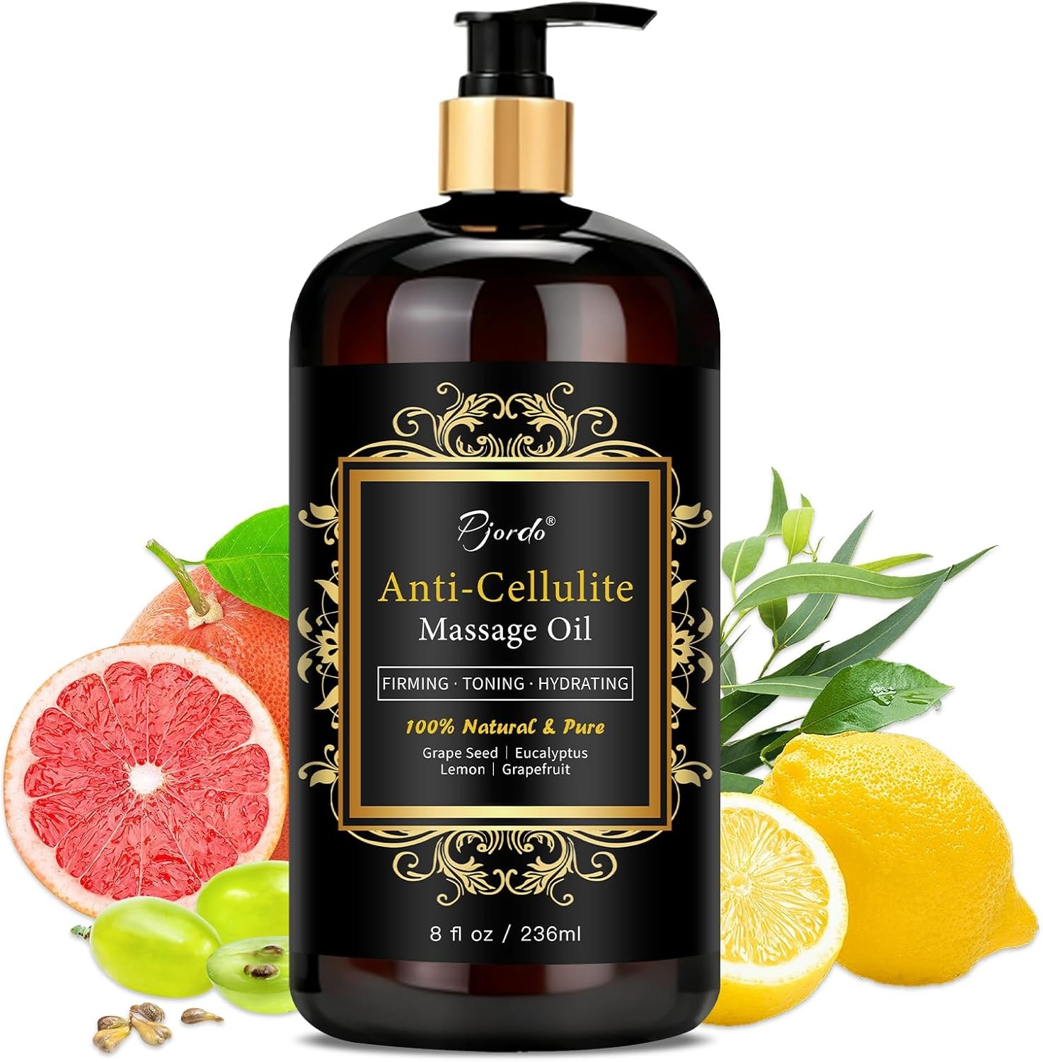 Anti Cellulite Massage Oil 250ml Pump Dispenser with Grapefruit Lemon Juniper Fe