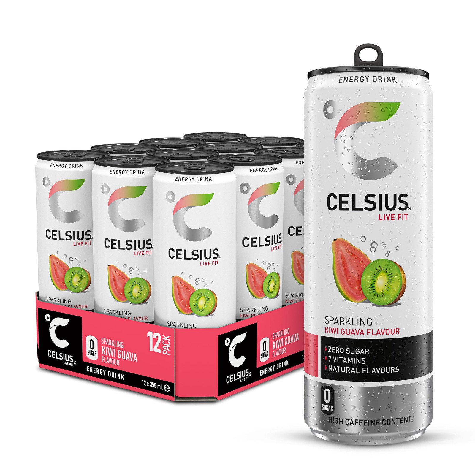 CELSIUS Energy Drink, Sparkling Kiwi Guava, Natural Flavours. No Artificial Colours, Sugar Free Energy Drinks, 355 mL, 12-Pack