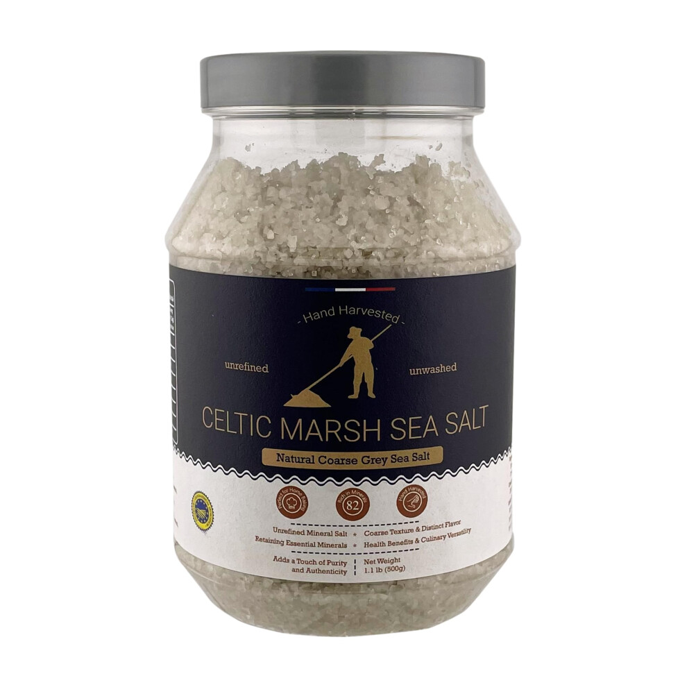 Celtic Marsh Sea Salt 500g - Light Grey, Coarse, Unrefined Natural Hand Harvested Sea Salt from France, Rich in 82 Essential Minerals