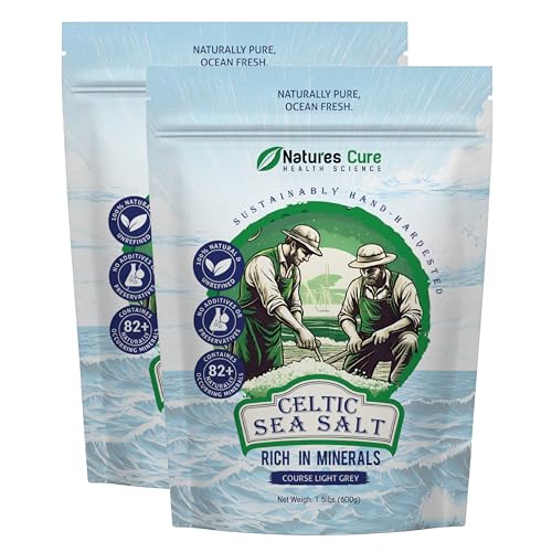 Celtic Sea Salt – 100% Natural Unrefined Celtic Sea Salt – Over 85 Rich Minerals Naturally Included – Light Grey, 600g – by Natures Cure