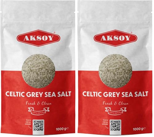 Aksoy Celtic Grey Sea Salt Coarse 1KG Natural Mineral-Rich Sea Salt, Traditionally Harvested (Pack of 2)