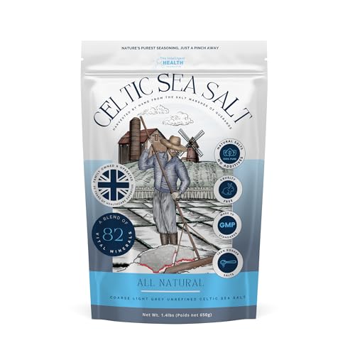 The Intelligent Health - Celtic Sea Salt 650g, Premium Organic, Rich in 82+ Minerals,Unrefined and Hand-Harvested from France, Fine & Coarse Crystals, 100% Kosher, Pure and Natural