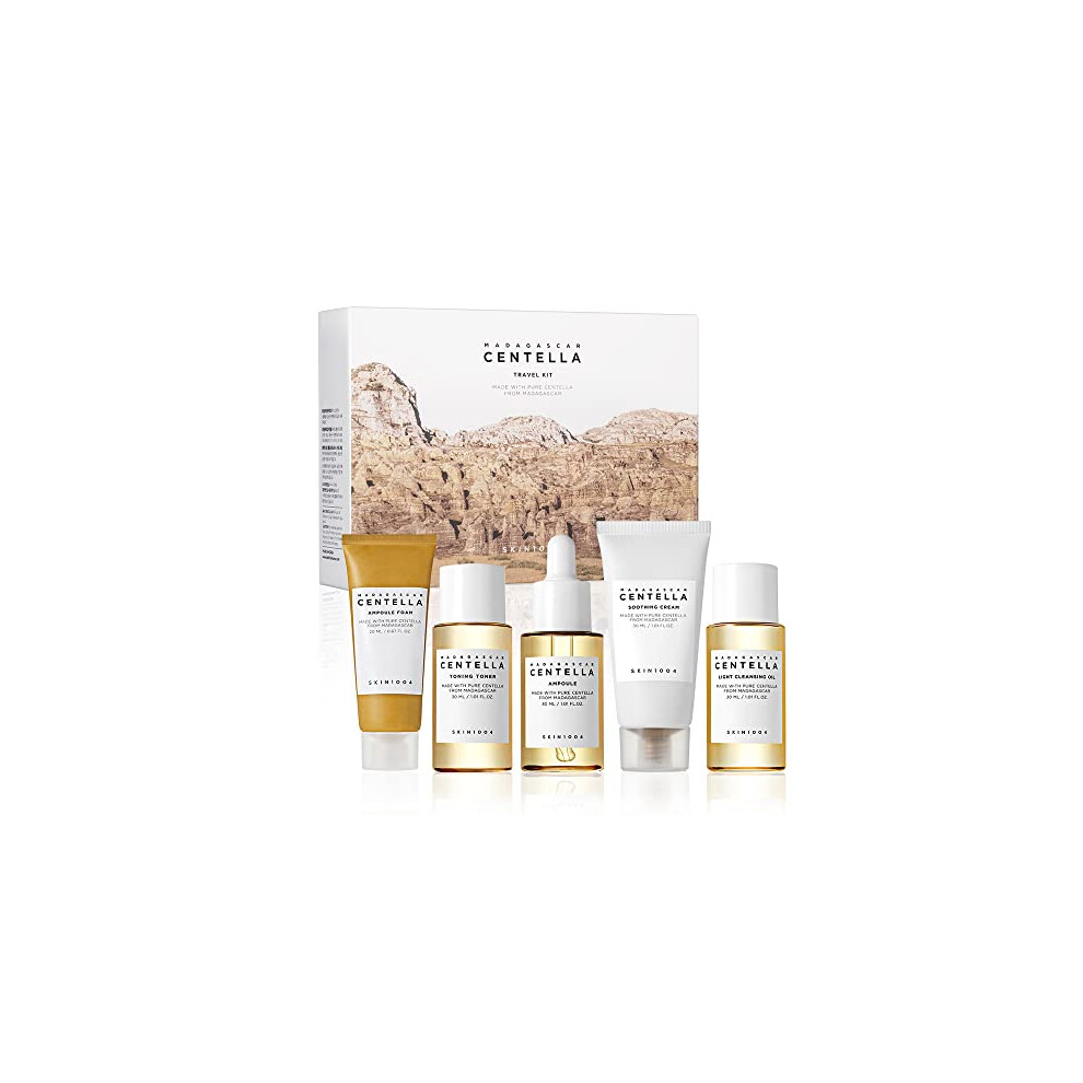 SKIN1004 Madagascar centella Travel Kit, Toner, Ampoule, Soothing cream, cleansing Oil, Ampoule Foam, Basic Skincare Box, compact Size, Soothing calm