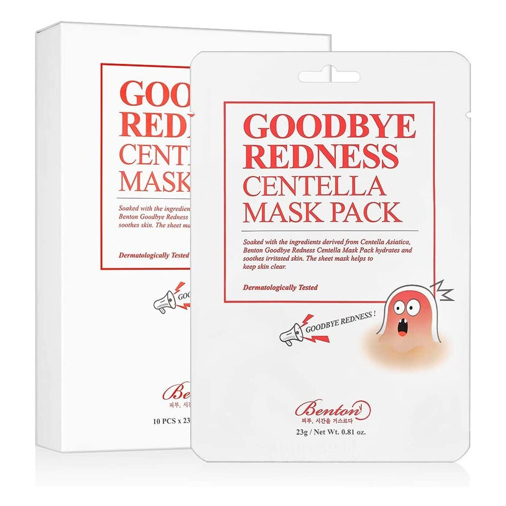 BENTON Good Bye Redness Centella Mask Pack(10 Sheets) - Korean Skin Care Face Mask with Centella Ampoule & Hyaluronic Acid Serum | Self Care Redn