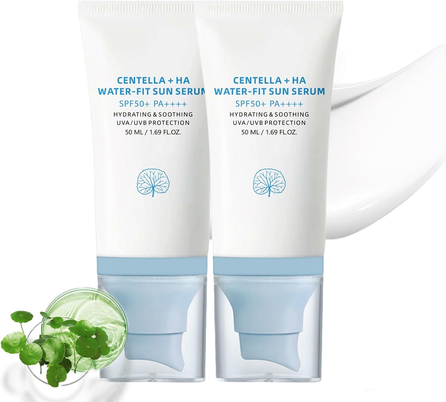 2PCS Madagascar Centella Sunscreen SPF 50 PA++++, Centella Serum Suncream, Centella Moisturiser for Face, Broad Spectrum UV Protection, Smoothing Water-Fit Sun Lotion, Vegan Korean Sunscreen, 50ml × 2